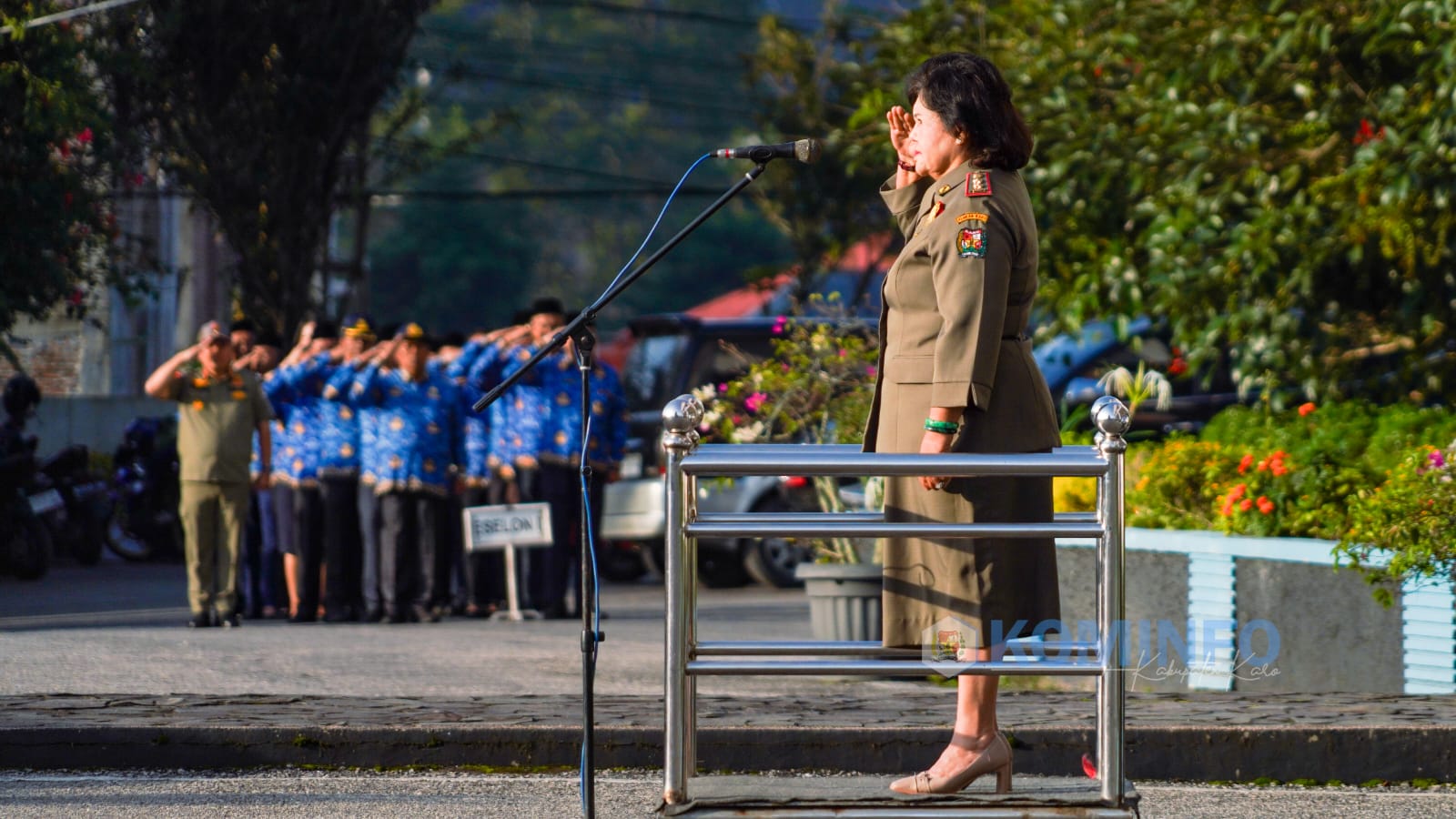 Bupati Karo, Cory Sriwaty Sebayang, didampingi oleh Wakil Bupati Karo, Theopilus Ginting, serta Plh. Sekretaris Daerah Kabupaten Karo, Dr. Drs. Eddi Surianta, M.Pd, memimpin Apel Gabungan di Kantor Bupati Karo pada Senin (17/2/2025).