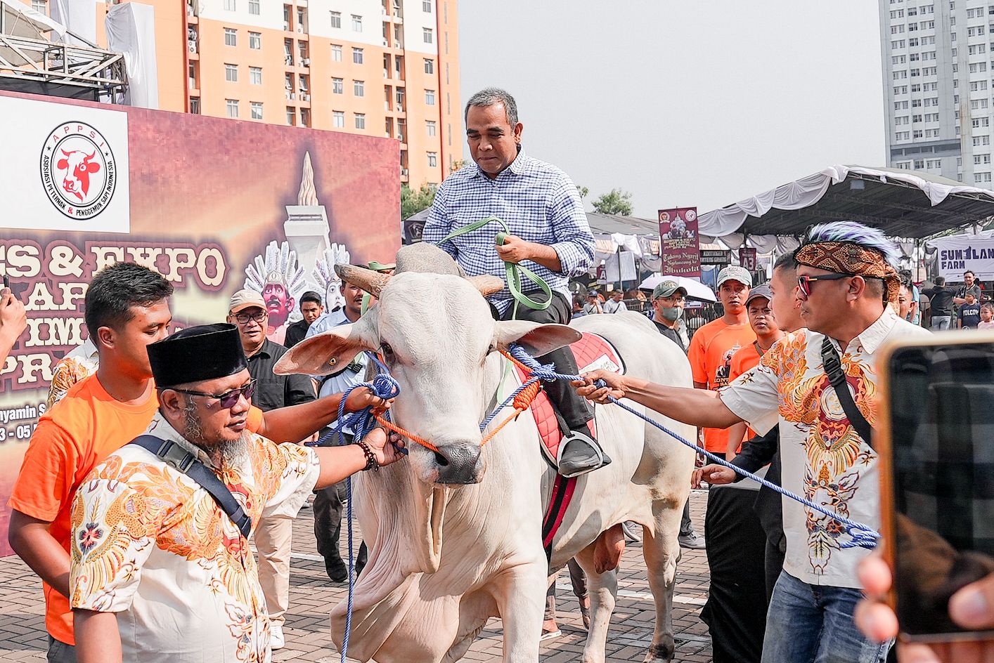Sekretaris Jenderal Gerindra Ahmad Muzani menyatakan mendukung kegiatan yang diinisiasi oleh Asosiasi Peternak dan Penggemuk Sapi Indonesia (APPSI) yang melakukan kontes sapi di Kemayoran, Jakartq, Sabtu (4/5/2024).
